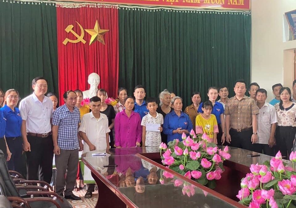 Ngày 26/4 vừa qua BTV Huyện đoàn phối hợp với Công ty cổ phần dịch vụ và xây dựng Nam Dương đã tổ chức thăm hỏi, tặng 45 xuất quà (mỗi xuất trị giá 800 nghìn đồng) cho các em thiếu niên nhi đồng có hoàn cảnh khó khăn, các gia đình chính sách, người có công với cách mạng và đối tượng bảo trợ xã hội thuộc 5 xã bao gồm Vĩnh Quang, Vĩnh Long, Vĩnh Tiến, Vĩnh Phúc, Vĩnh Hùng.